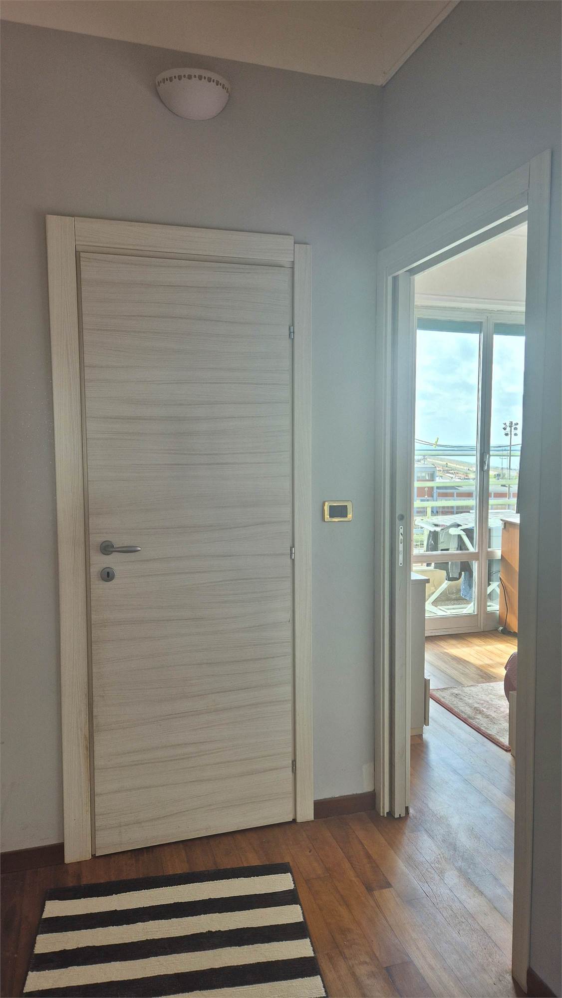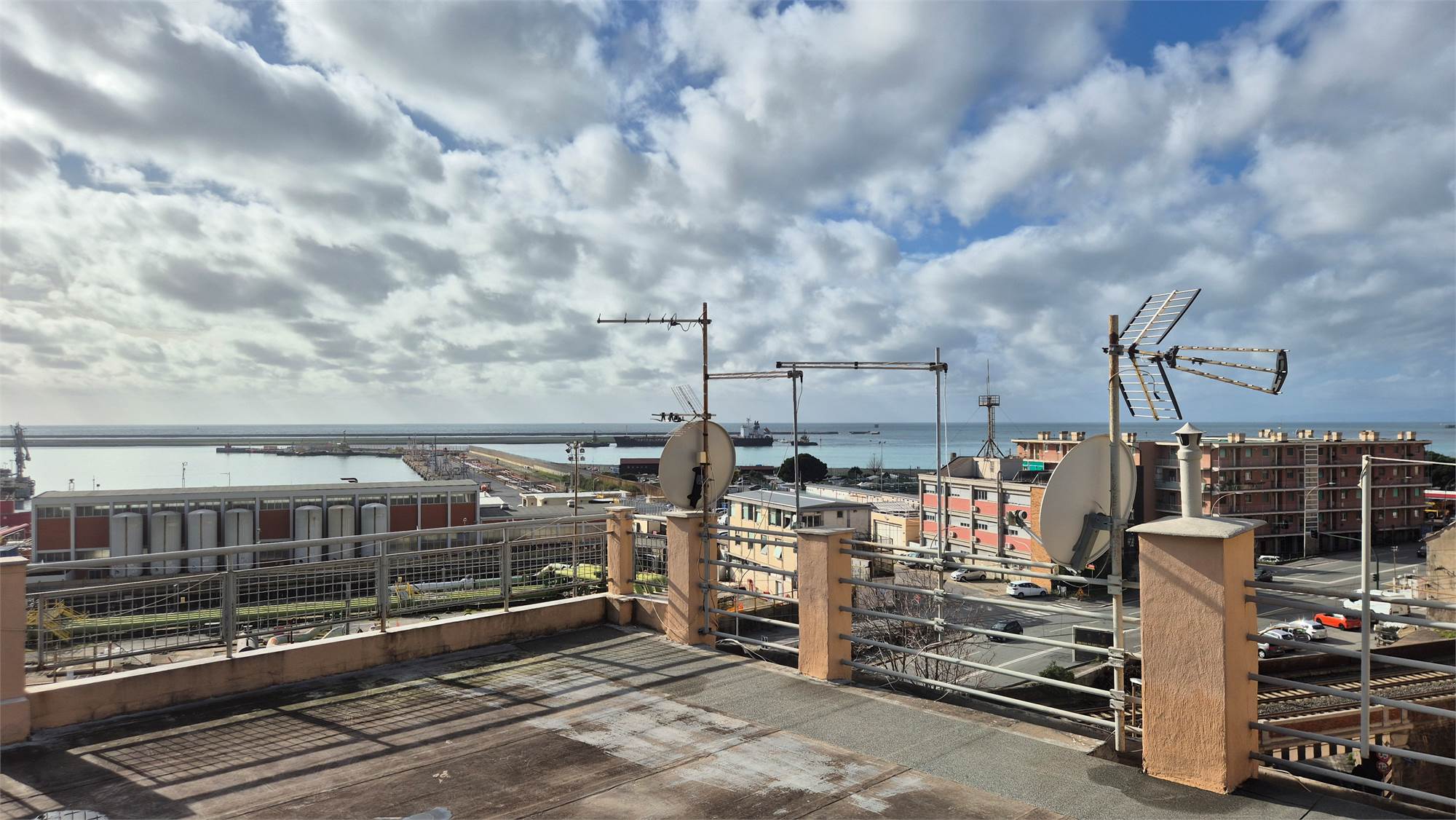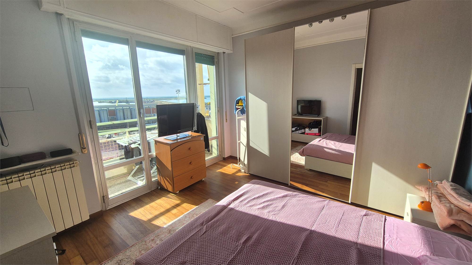 MULTEDO In palazzina anni 50 di soli tre piani, proponiamo all'ultimo piano splendidi sei vani e mezzo, biservizi, ristrutturati con soleggiata esposizione est sud e ovest e porzione di terrazzo sovrastante di proprietà. L'immobile si compone di: ingresso in salone doppio con angolo cottura prospicente su balconata esposta a sud con vista mare, due camere matrimoniali, bagno con vasca idro e bagnetto con doccia. Il riscaldamento è autonomo. Vista aperta su tre lati.